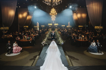 ICC 웨딩홀의 웅장함과 빛의 흐름을 완벽하게 해석하는 본식 스냅 전문 팀입니다.